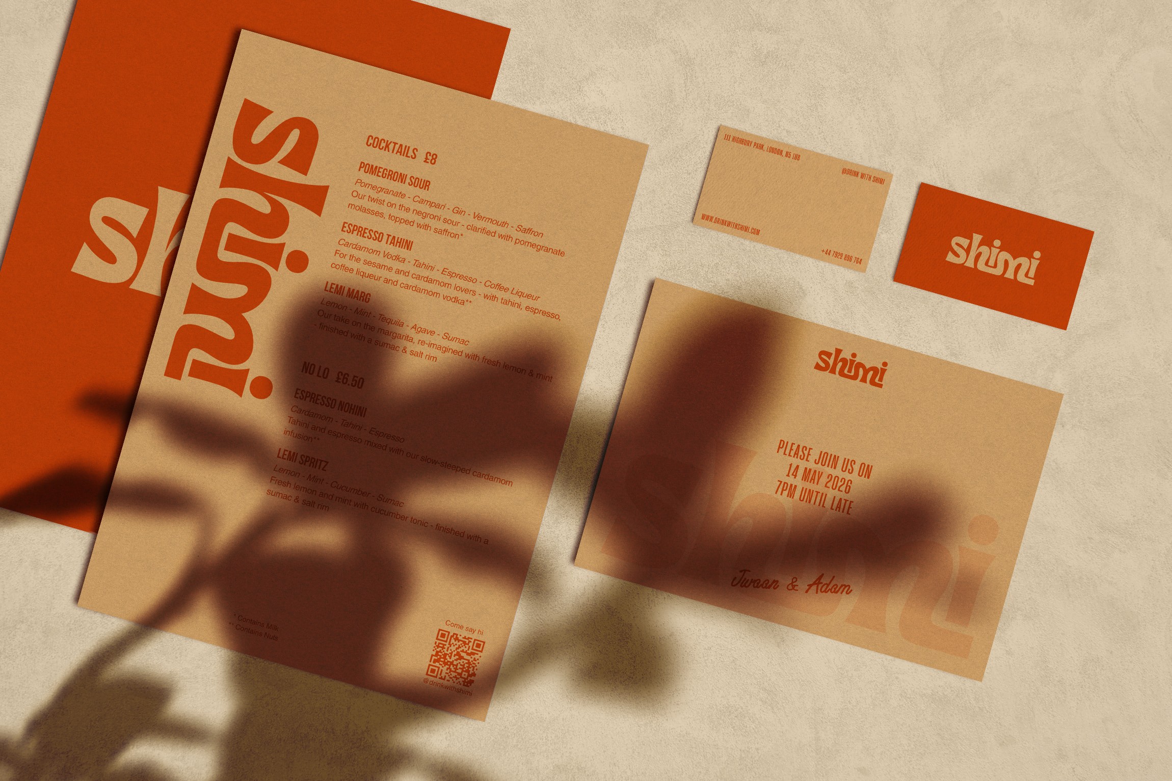 Shimi reimagines the cocktail experience through the bold, aromatic flavors of the Middle East. Born from the diverse heritage of its founders spanning Egypt, Iraq, the UAE, and the UK, the brand elevates underused botanicals like sumac, cardamom, and pomegranate for the global stage. The visual identity centers on a high-impact logo that bridges the Latin alphabet with the structural logic of Arabic script. The fluid connections between the ‘h’, ‘i’, and ‘m’ mimic a Kashida (horizontal extension), creating a sense of rhythmic movement. This is balanced by deep, rounded bowls at the base of the ‘s’ and ‘h’ that echo the ka’sah (sub-linear curves) found in traditional letters like Seen (س) or Noon (ن). More than just a name, the brand serves as a literal "mix", a visual bridge between London’s contemporary design scene and authentic Middle Eastern heritage.
